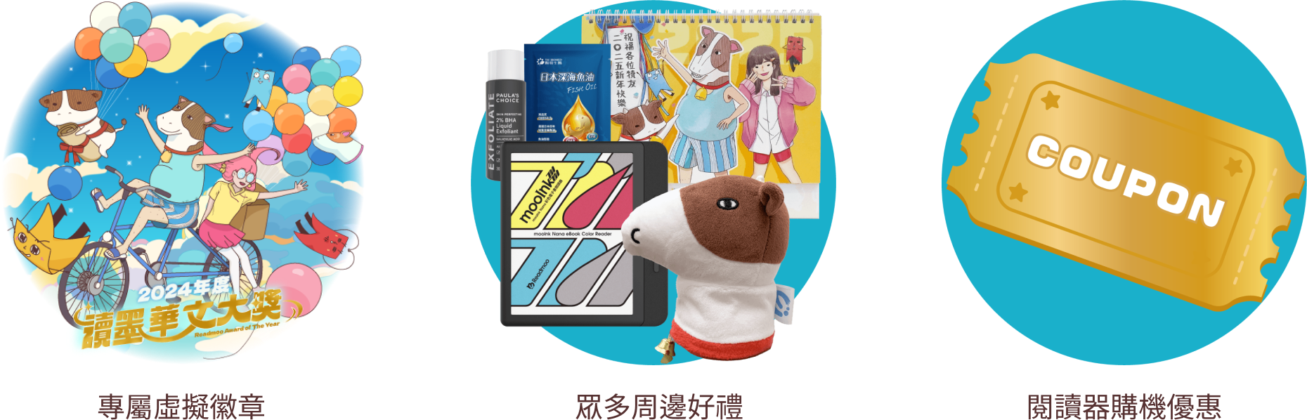 參加活動並完成任務,就能抽可愛的讀墨周邊好禮與專屬虛擬徽章~