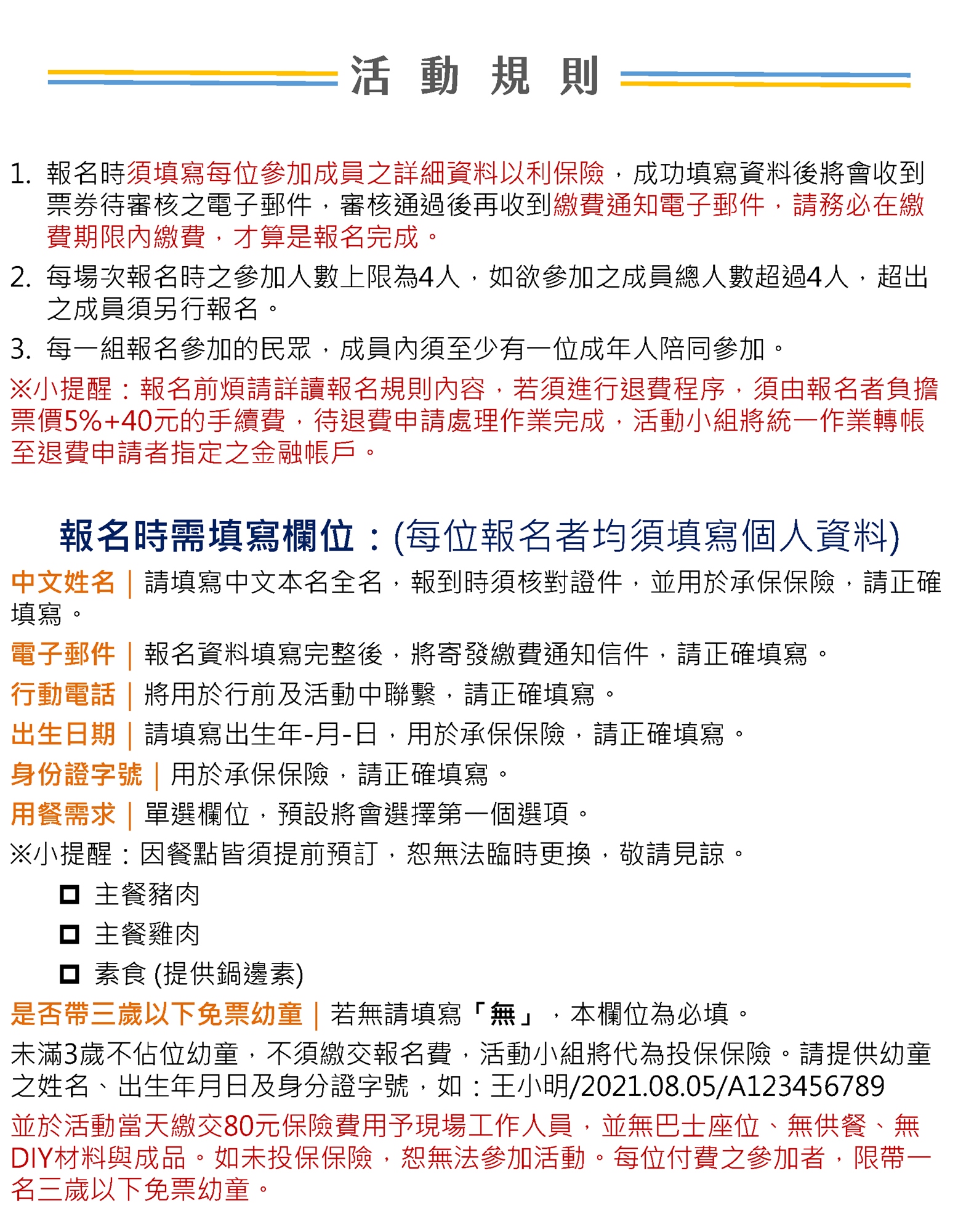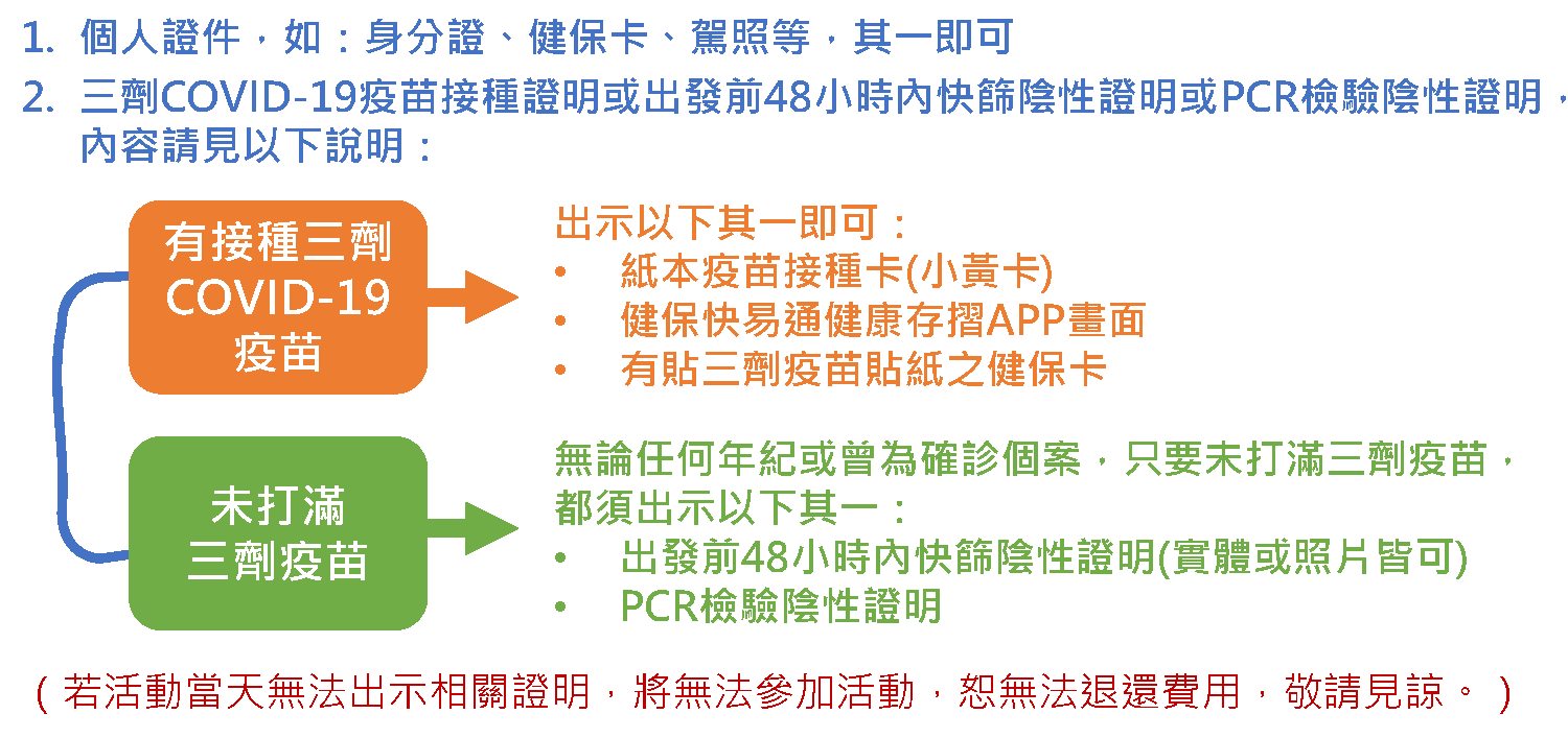 【參加者注意事項】活動當天報到時,請攜帶「每一位」參加者之以下物品,至集合地點提供給工作人員確認: