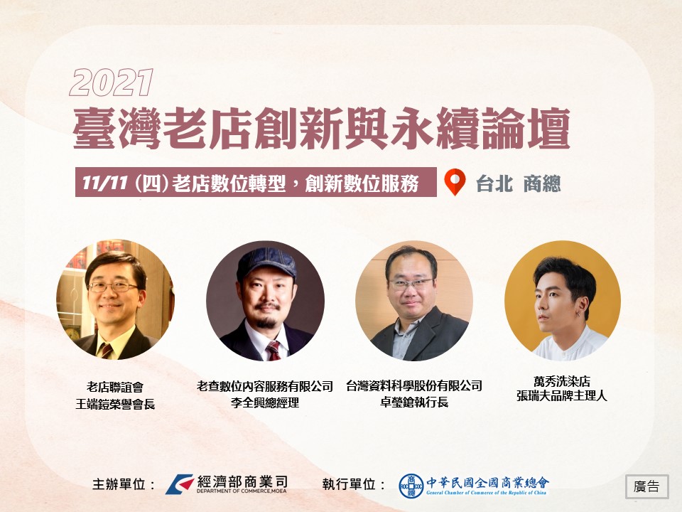16:00-16:30 | 老店業者數位轉型成功經驗分享-創立平台勇於嘗試,再造老店新氣象 | 萬秀洗染店 張瑞夫品牌主理人 (110年優良臺灣老店) |