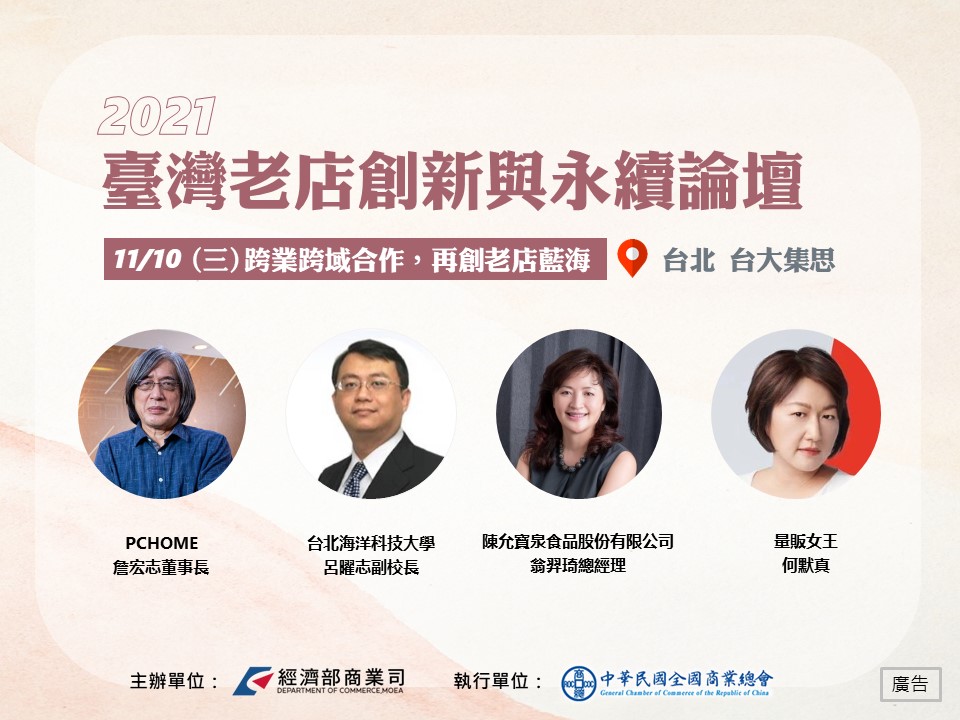 | 16:20-17:00 | 【聯合與談】老店如何跨業跨域合作,再創新藍海? | 主持人:陳允寶泉食品股份有限公司 翁羿琦總經理 與談人: 台北海洋科技大學 呂曜志副校長 量販女王 何默真 |