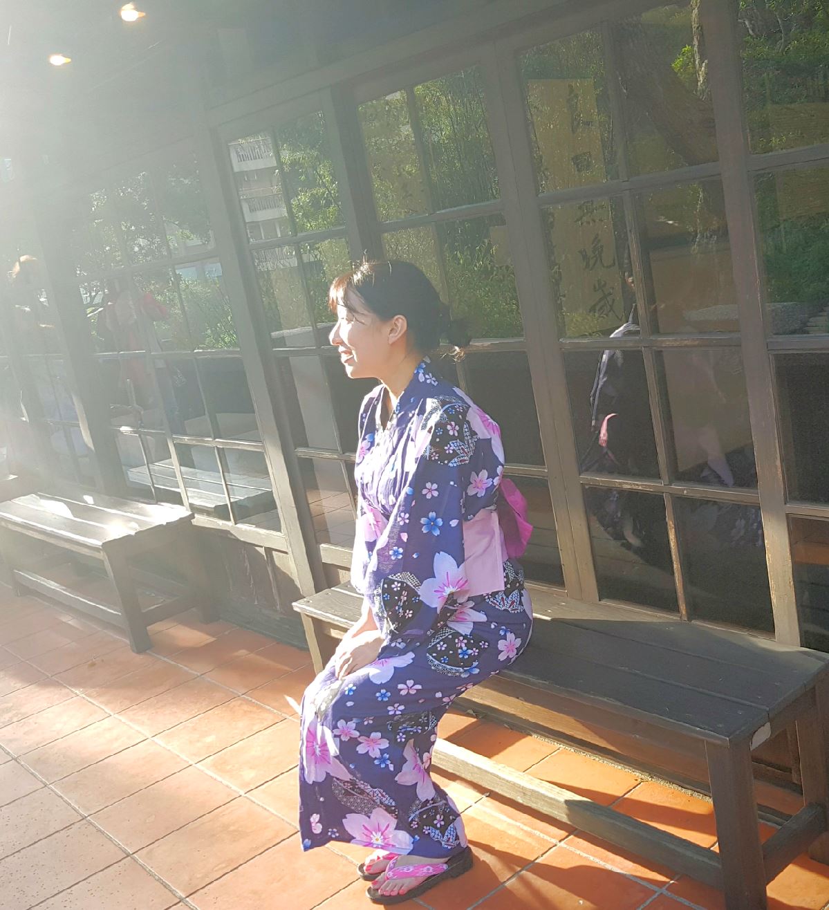 3. 由著裝人員協助穿著浴衣及10分鐘的微課堂,去北投自由散步拍拍照。
