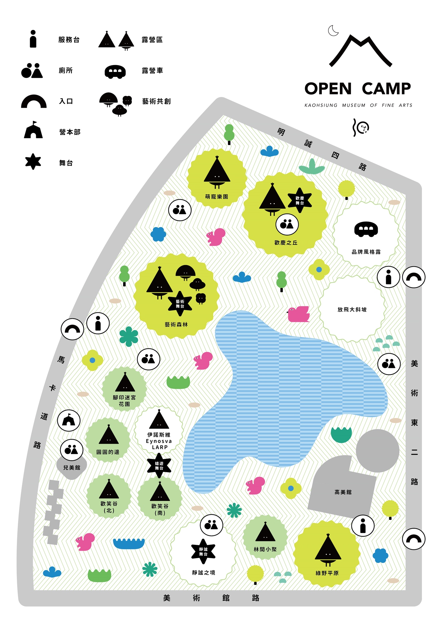 43公頃的高美館園區為高雄市生態廊道的一環,在規劃開發即定位為自然公園,採用生態工法及降低人工設施數量,因此園區有許多不同於一般景觀公園豐富的昆蟲或生物群落等;期望透過這次的城市野營過程,同時體驗人與自然共享的永續生態環境。
