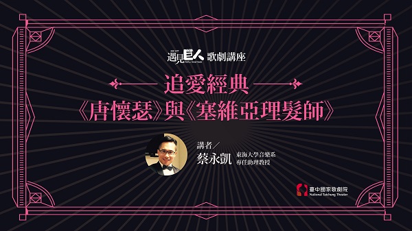 愛情有百種面向,有人突破層層障礙,為的就是來到愛人身邊;有人無私守護,為的是愛人平安歸來;也有完全沉溺於感官的享樂,迷失於縱慾狂歡中。本場講座將透過兩齣追愛的經典歌劇《唐懷瑟》與《塞維亞理髮師》,讓我們看見劇中角色追求愛情的觀點與態度。