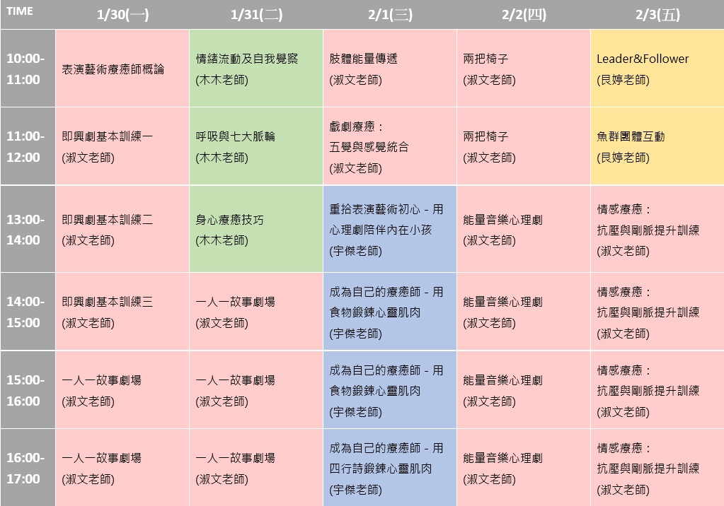3.課堂實習:學員課後需完成40小時課程實習,並完成表演藝術療癒師課程作業。