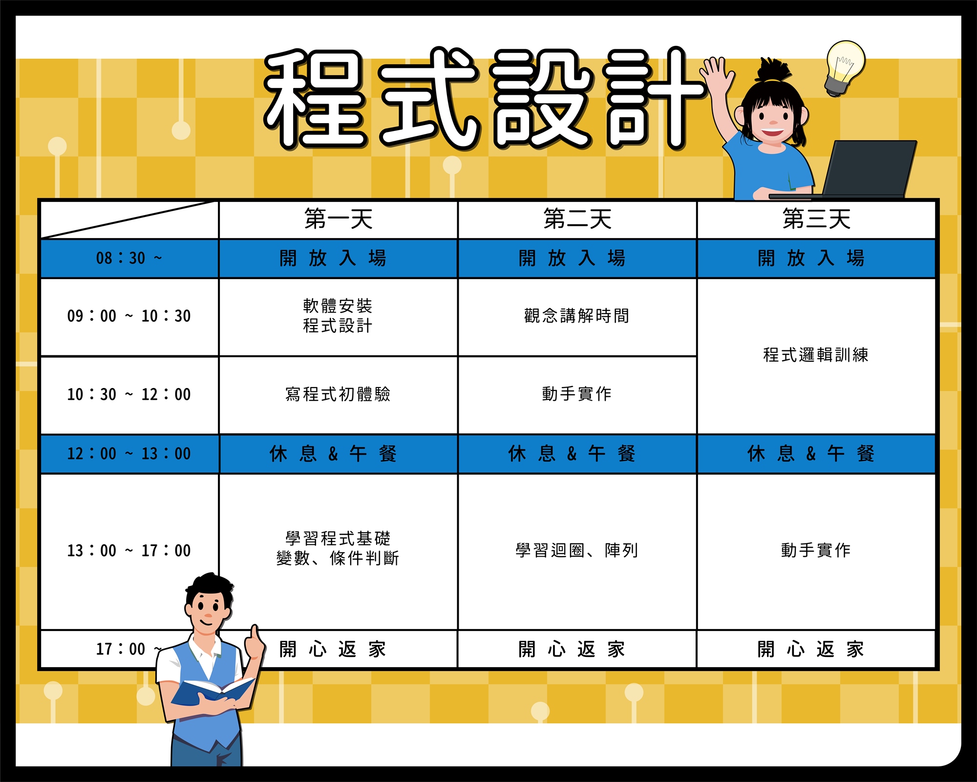 暑假的課程結束後,可以銜接我們的 "程式語言常態班"