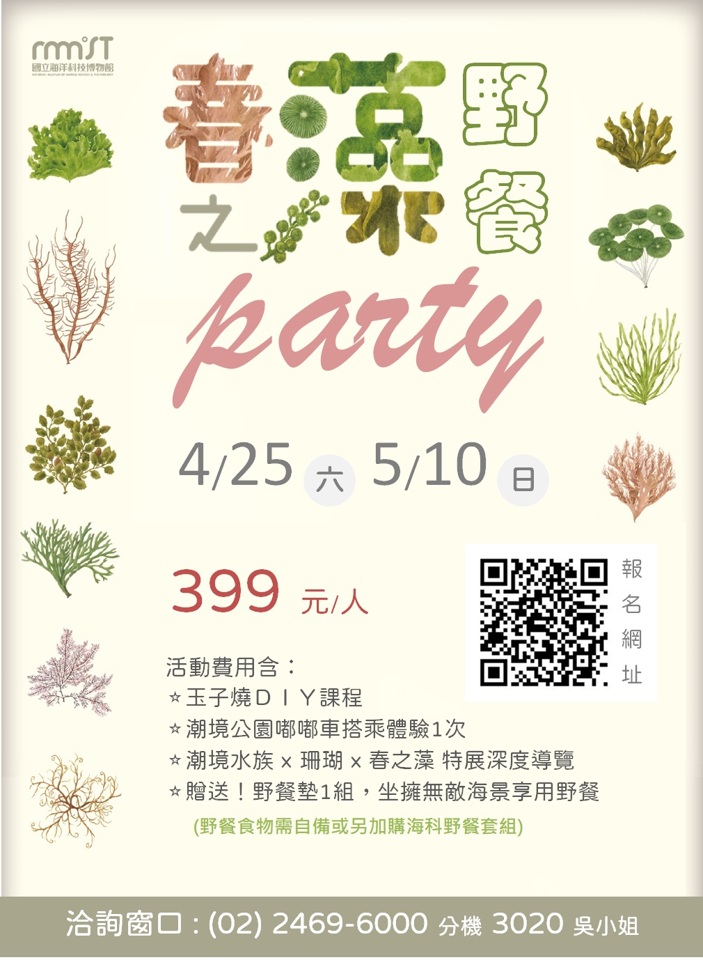 399元/人 (含親子手作、特展參觀、潮境穿梭號嘟嘟車體驗,另加贈野餐墊一組)