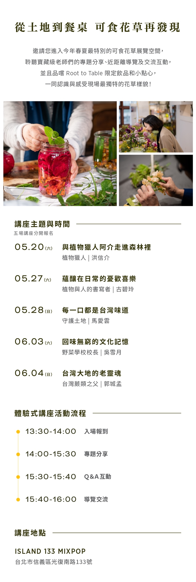 Root to Table 從土地到餐桌 可食花草再發現【體驗式講座|每場限量20名】