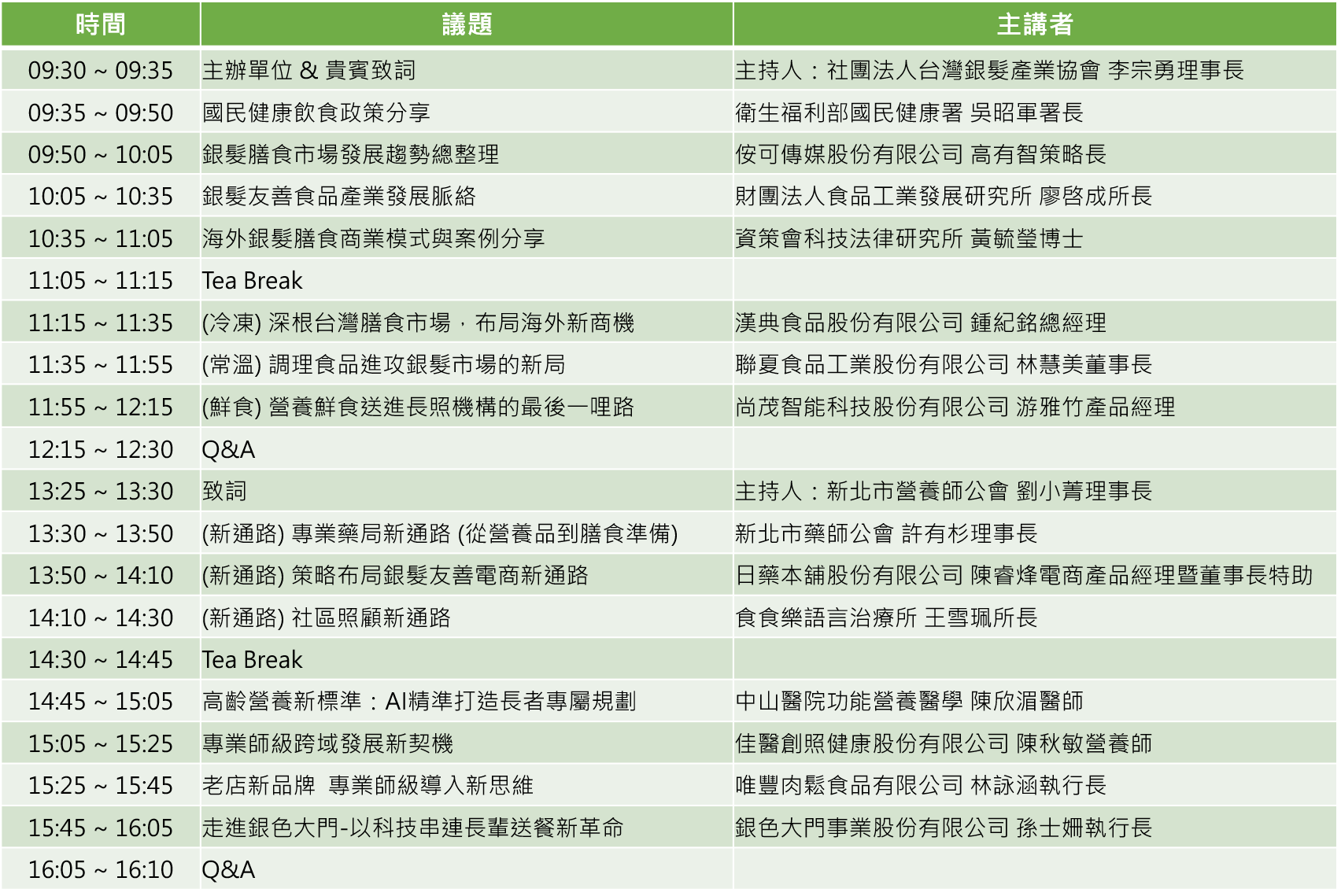 參加對象│食品廠商、零售與藥局醫材通路,社區關懷據點、長照服務業、醫療院所、餐飲業者以及對銀髮膳食有興趣之專業人士