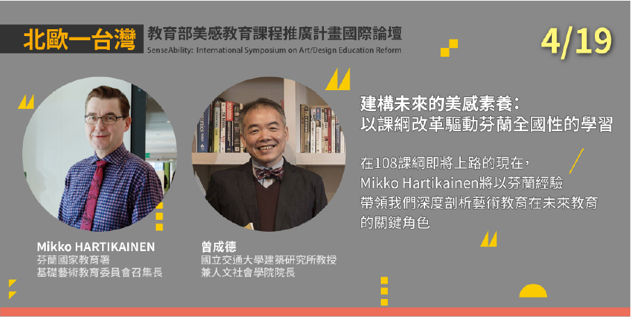 以美感驅動的當代課綱改革為題,從國家教育課綱的角度開始,探討面對新時代,課綱改革方向與所面臨的問題。開幕演講將由芬蘭課綱改革代表Mikko Hartikainen主講,分享芬蘭為因應現今社會以及未來發展趨勢所進行的課綱調整,以現象為本的模組發展及重點方向,進而探討芬蘭與台灣課綱改革過程中所面臨的挑戰與契機。
