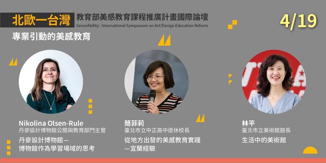 本專題邀請丹麥設計博物館公關與教育部門主管Nikolina Olsen-Rule,就其館方如何推動設計教育,設計針對不同客群對象的教育課程,以及如何與學校合作,規劃與校課程互相搭配的教育活動,提供學校更具體的外部專業資源;另邀請臺北市立中正高中退休校長簡菲莉老師,分享其過去在宜蘭縣教育局任職時,地方政府協助共同推動的美感教育計畫;更邀請到臺北市立美術館林平館長,將以生活中的美術館為題,分享北美館方經驗。