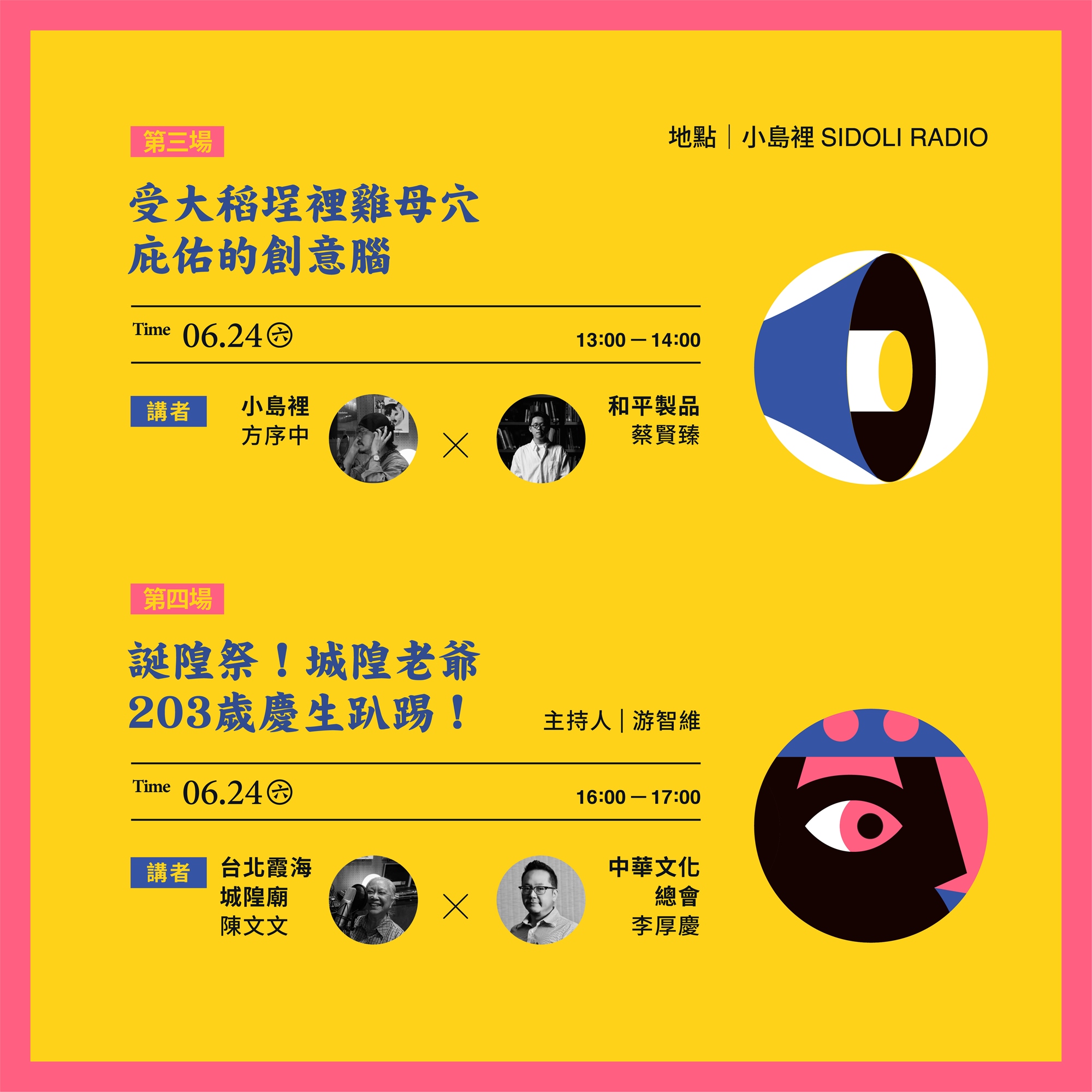 小島裡文化﹒方序中 ⤬ 和平製品﹒蔡賢臻第四場|6/24 ㊅ 16:00-17:00 誕隍祭!城隍老爺203歲慶生趴踢!
