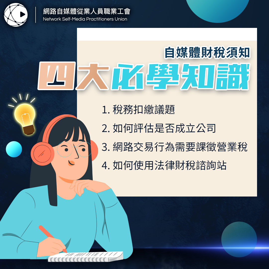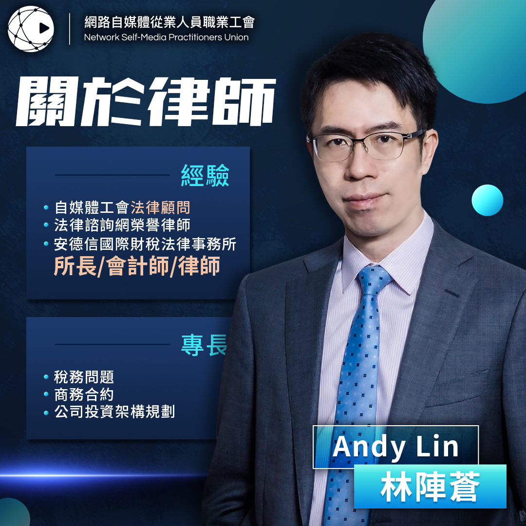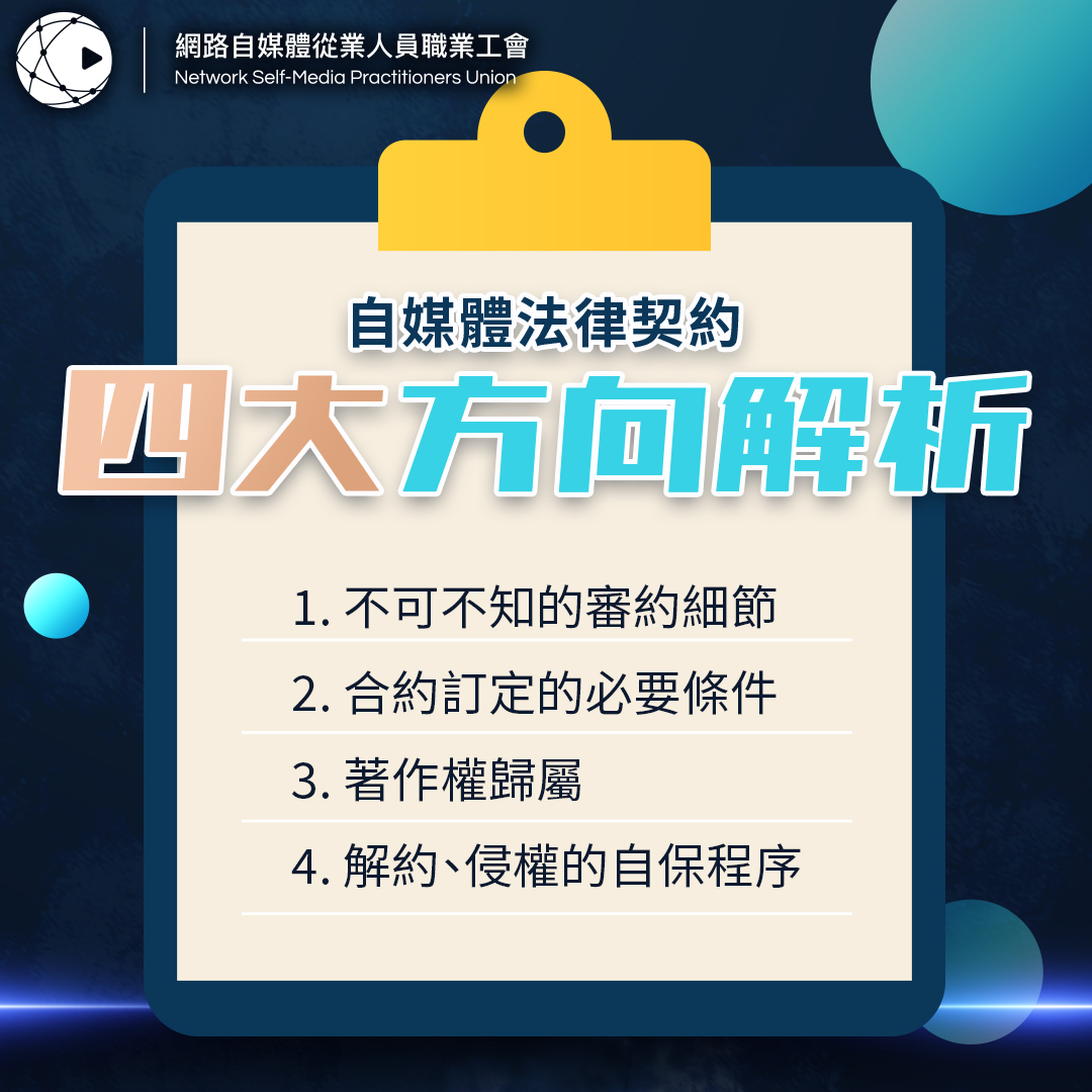 講座內容:分成「自媒體法律契約」與「自媒體財稅須知」