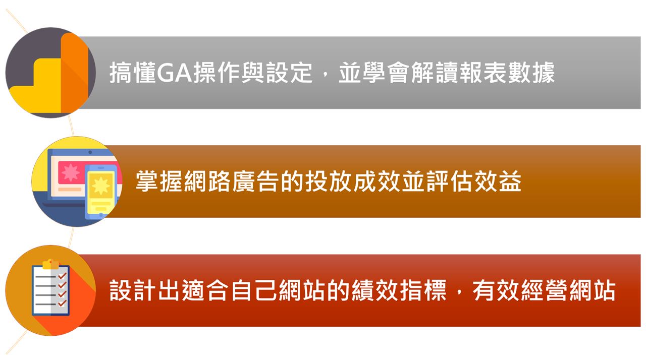 但Google Analytics能產出的資料量非常豐富,究竟要怎麼看、看些什麼、怎麼做調整?本次課程,我們邀請到資深網站成效優化顧問王如沛老師,帶大家由基礎起步,從設定帳戶開始逐步深入,學會怎麼解讀Google Analytics從網站產出的數據報表,並看出廣告的績效與改善方向,你將能建立全面以數據為基礎的思維,做出符合消費者所需的網站與行銷方案!