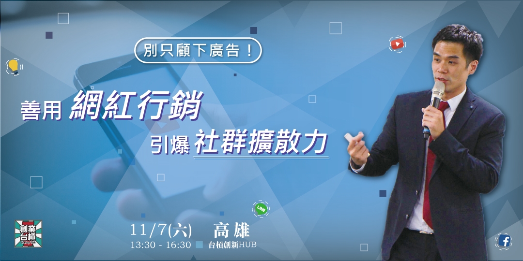 11/7(三)【台槓私塾】別只顧下廣告! 善用網紅行銷,引爆社群擴散力