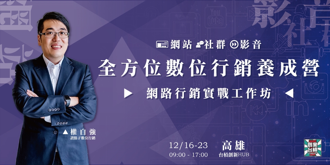 12月【台槓私塾x讚點子】網路行銷實戰工作坊高雄班(21小時)!全方位數位行銷養成!