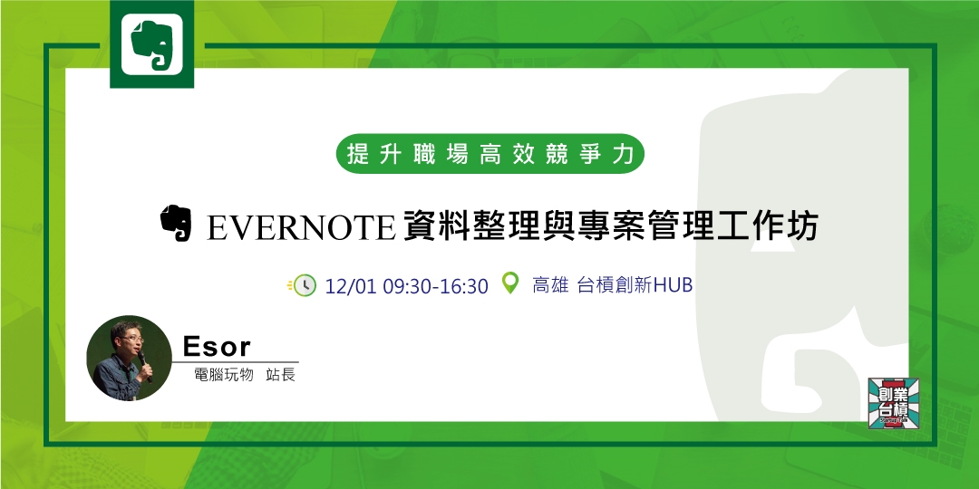 12/1(六)【台槓私塾】提升職場高效競爭力!Evernote資料整理與專案管理工作坊