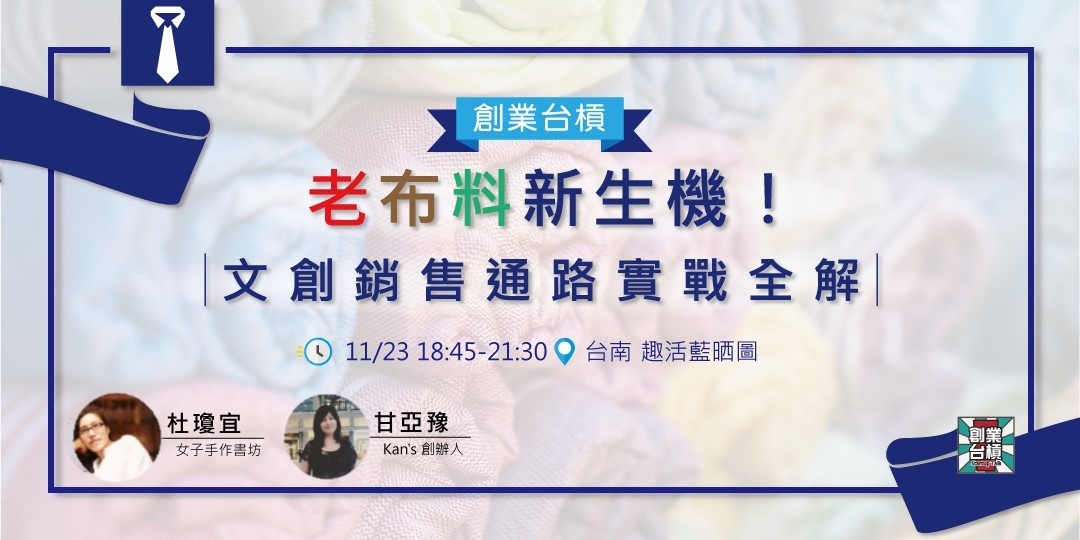 11/23(五)創業台槓@台南 #11 做得好也賣得好!老布料的文創重生之路