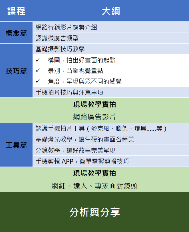 1/6(日)【台槓私塾】手機也能拍出好影片!導演親授,FB廣告影片拍攝實戰班