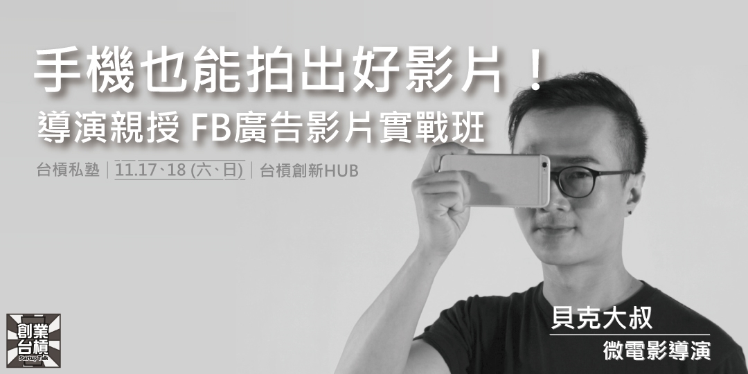 11/17、18(周末)【台槓私塾】手機也能拍出好影片!導演親授,FB廣告影片兩日實戰班