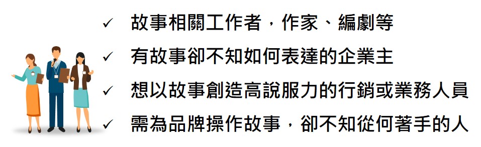 這次課程,邀請到首席故事教練,身兼小說家、編劇與導演的許榮哲老師,將以理論、實務與演練並重,帶我們學會用一個又一個精彩的故事收服對方的心!快速掌握故事的構成與說故事心法,發揮故事力,讓顧客忍不住幫你分享給更多人,讓故事成為最好的廣告!