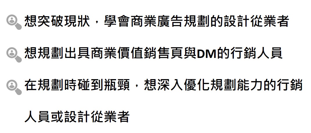 設計師、行銷人員們,除了社群用的行銷Banner素材外,最常接觸的就是版面更完整、資訊更豐富的「網站銷售頁或紙本DM等設計」。然而這些文宣的最主要目,終究在於「行銷溝通、傳遞資訊、觸發行動」,除了考量美觀,還要考量文案、視覺動線、call-to-action、適當的資訊量,因此在提出視覺企劃並與請設計師發揮創意前,掌握行銷溝通的架構與邏輯是非常重要的!