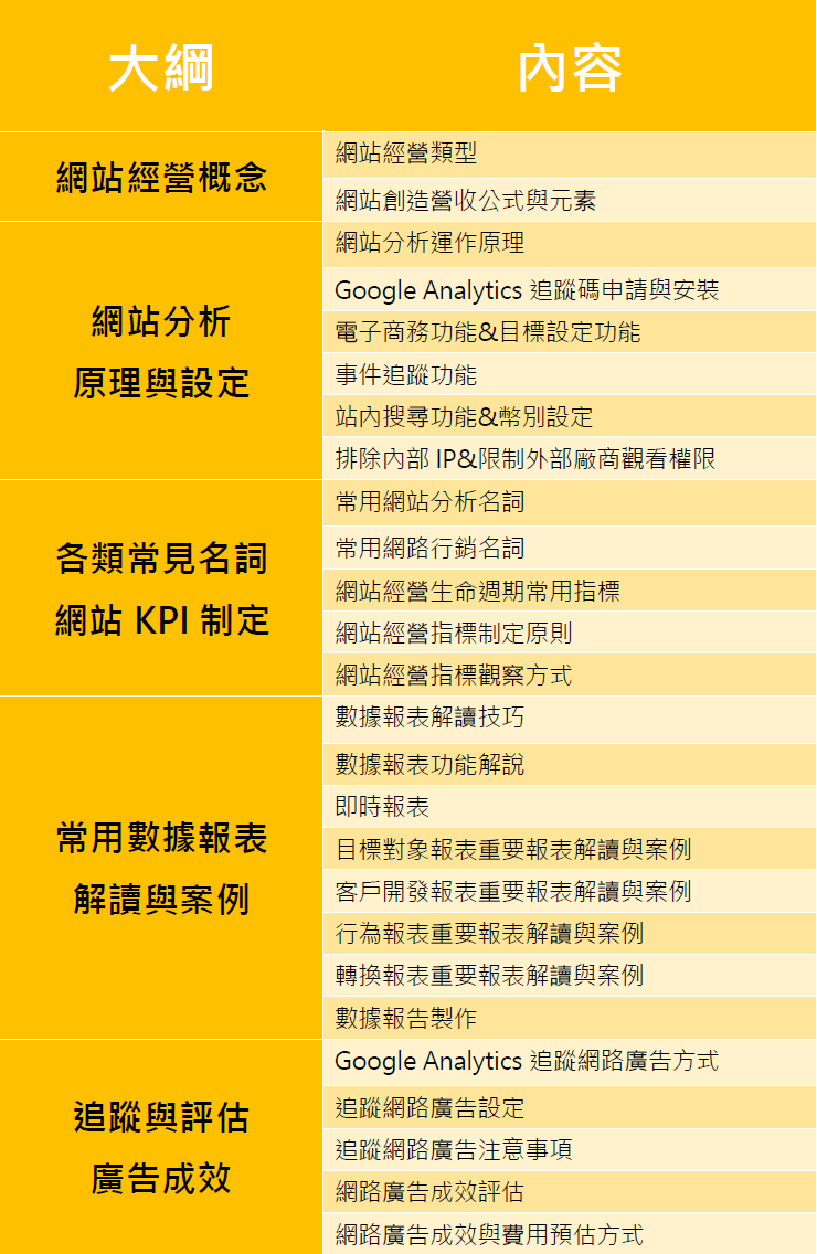 3/7、14(六)Google Analytics網站分析與行銷規劃12小時實戰班