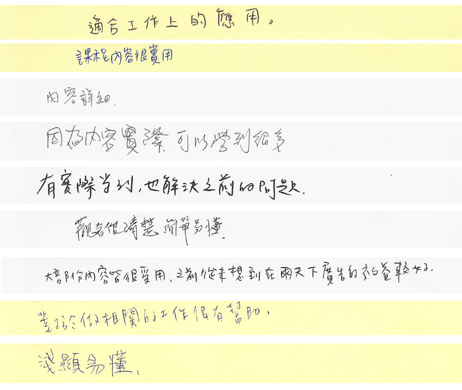 - 課程諮詢:週一~週五09:00-18:00請洽:07-3318819 張小姐