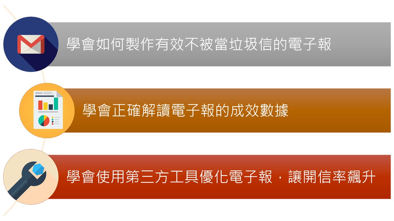 但電子報行銷和所有行銷方法手段目的一致,都是希望成功傳遞訊息並引起消費者行動,因此不僅要規劃能成功寄出並讓人願意打開的信件,後續分析也相同重要。若你的信件掉進垃圾信夾,或是並未持續分析吸引顧客打開信件的要素,那就像DM被亂發,最後被投進回收桶中。
