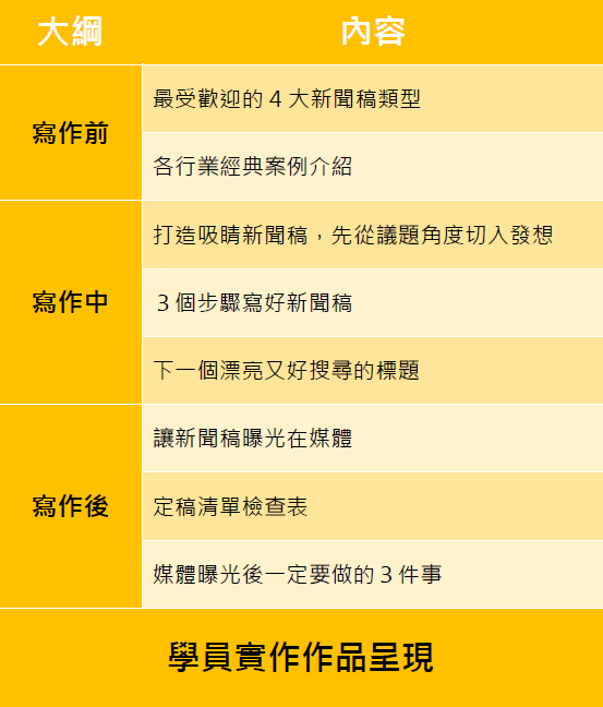 - 了解各行業新聞稿類型與撰寫步驟