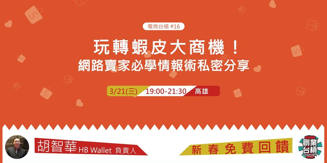 【台槓新春回饋】3/21(三) 電商台槓 #16-玩轉蝦皮大商機!網路賣家必學情報術私密分享(免費)
