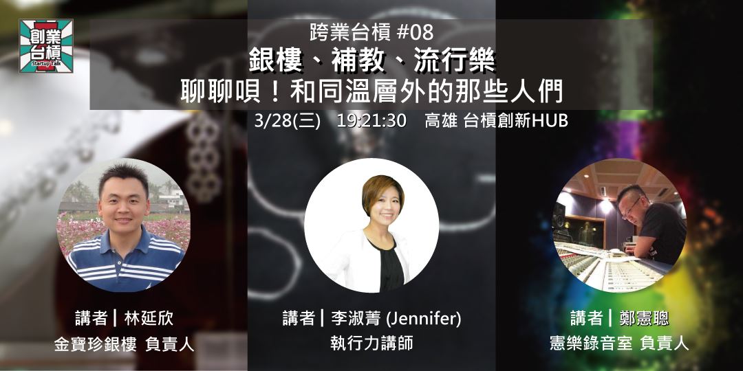 【台槓新春回饋】3/28(三) 跨業台槓 #08【銀樓、補教、流行樂】聊聊唄!和同溫層外的那些人們(免費)