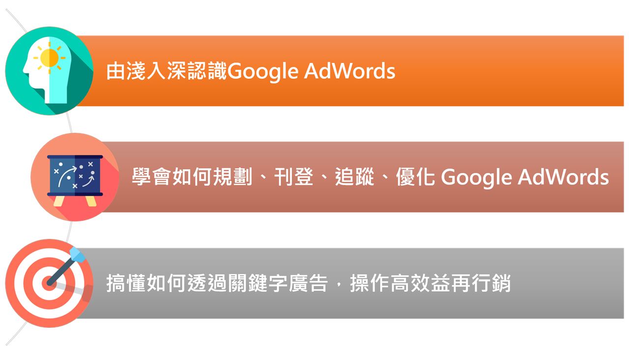 在資訊爆炸的時代,許多人已經習慣萬事問Google,想讓你的網站在打敗眾多對手,出現在潛在消費者面前,並轉出源源不絕的訂單,在搜尋引擎優化(SEO)上下功夫,絕對是至關重要的一環!但當SEO無法短期見效,業績壓力卻揮之不去,Google推出的關鍵字廣告(AdWords)就是救命的及時雨!