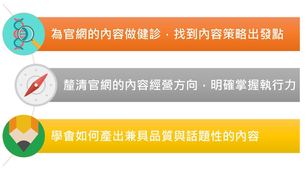 這次課程,我們邀請到跨足10大產業的資深媒體人張瑋容老師,以11年寫作採訪編輯經驗,引領大家逐步分析內容行銷的要素、策略、步驟、及技巧,從創意發想、寫文執行、行銷策略和資源整合四個角度,讓寫出來的內容一點都不像廣告,精準掌握內容行銷精髓,成為企業的內容行銷操盤手!