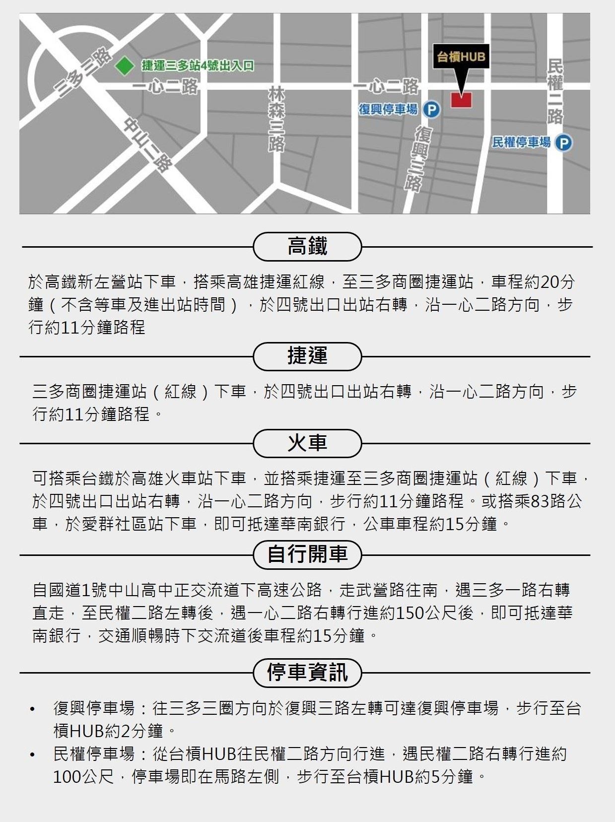 - 活動地點:高雄市前鎮區一心二路33號三樓(台槓創新HUB)