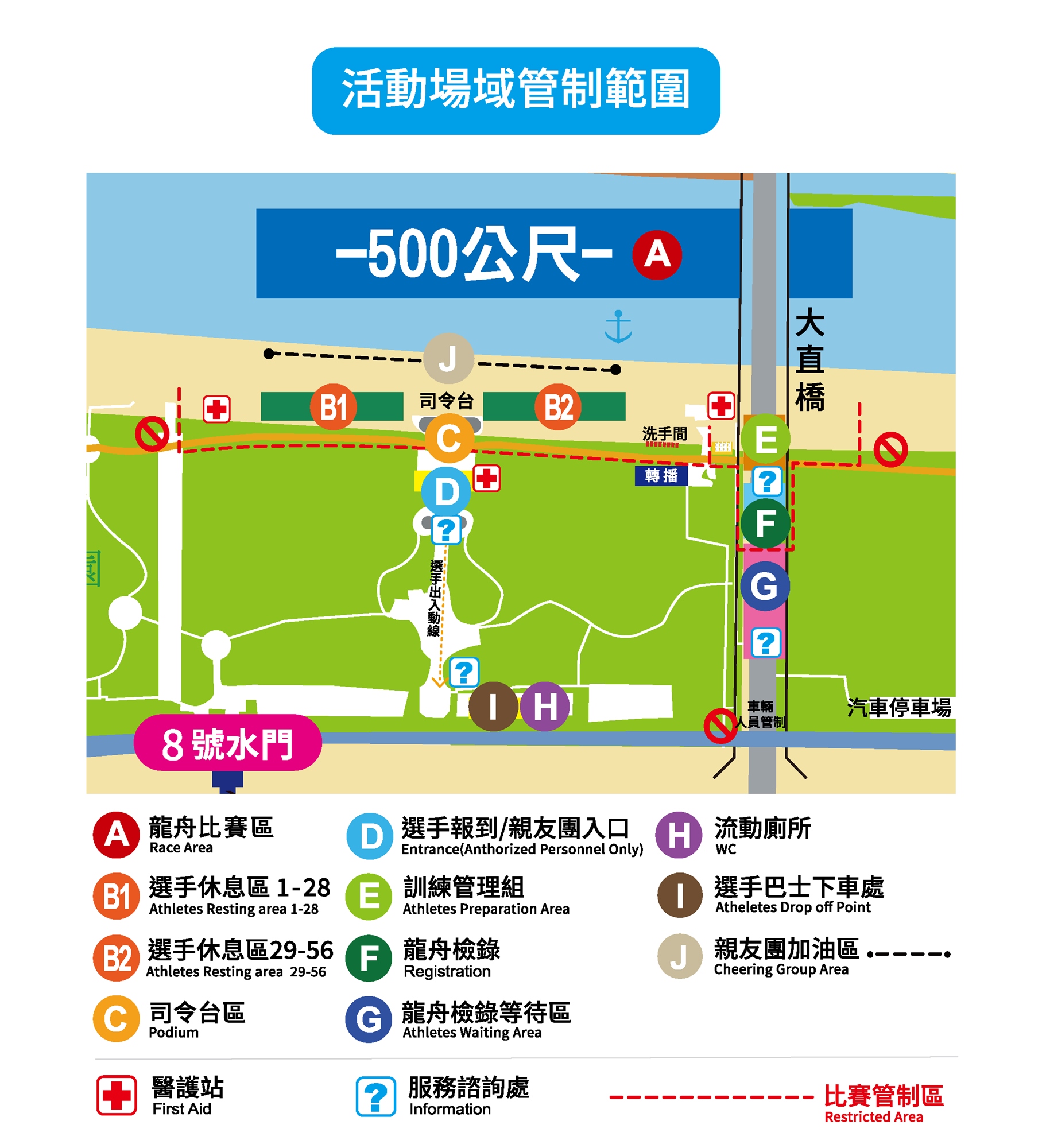 - 管制區內開放必要之飲食,敬請響應環保減少垃圾產生。