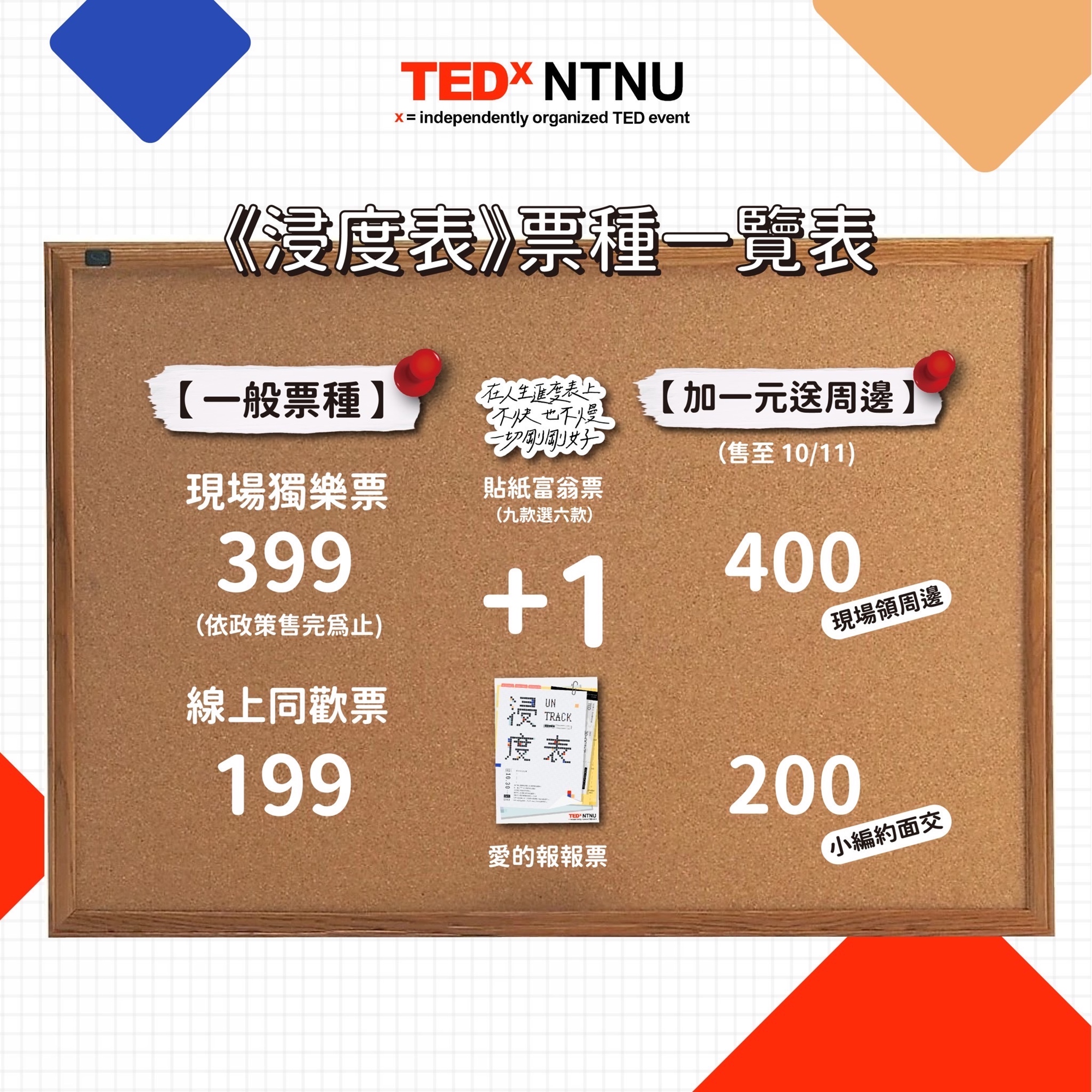 今年,以不限學校的參與制度為前提,TEDxNTNU團隊再次成行,以傳承 TEDx 在師大的精神為目的獻上年會《浸度表》。