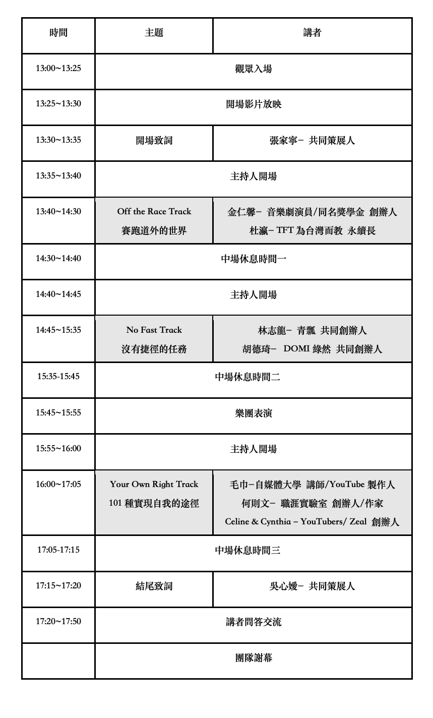 3.入場時間為13:00-13:25,若13:25仍未入場者,須等至換場時方可入場