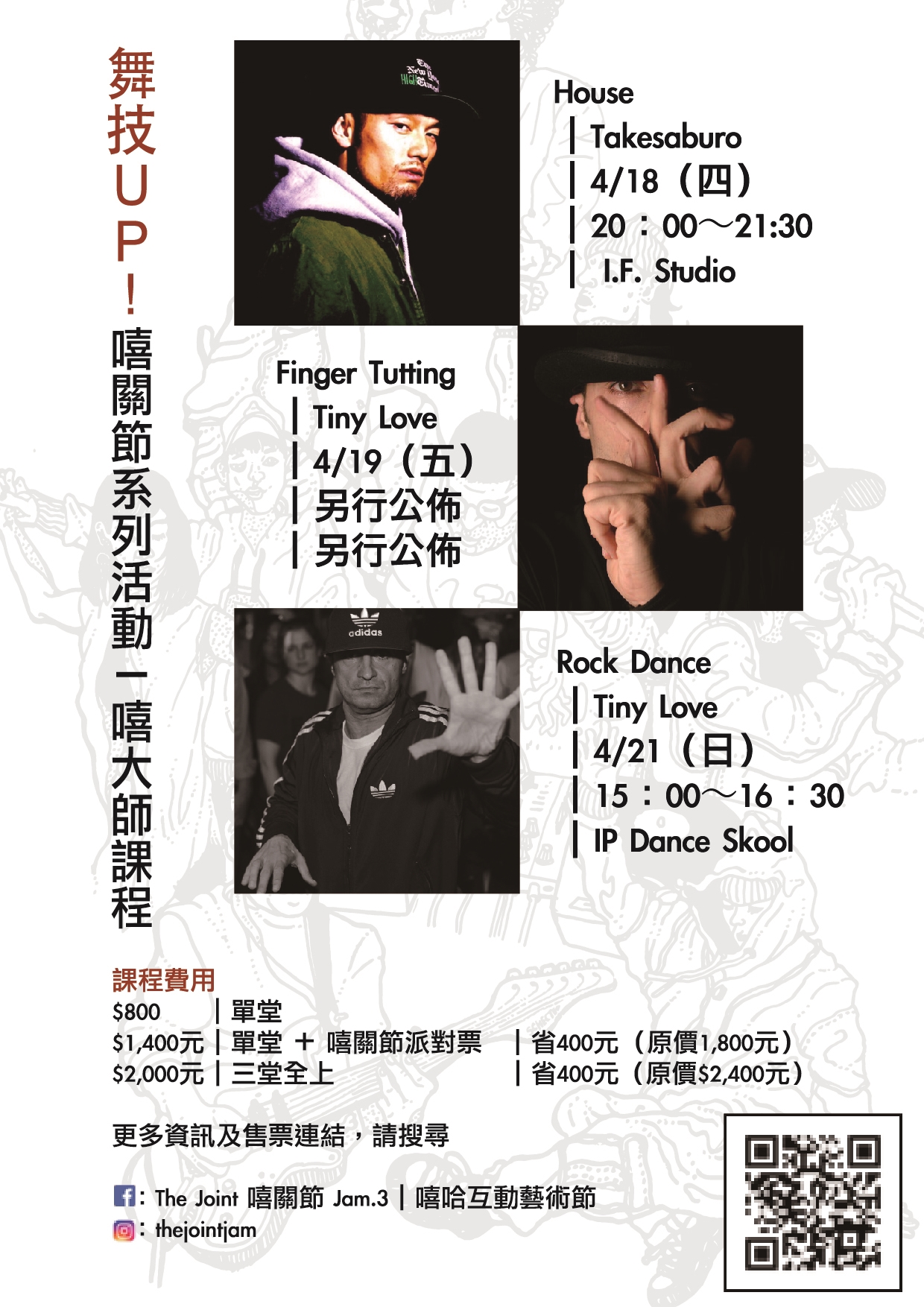3、同時報名Takesaburo House課程及4/21 Rock Dance課程只需2,000元(原價2,400元)