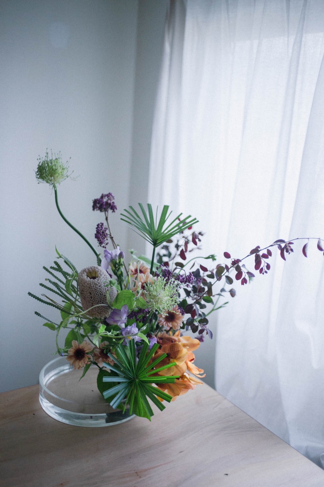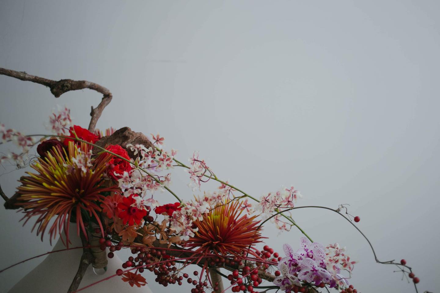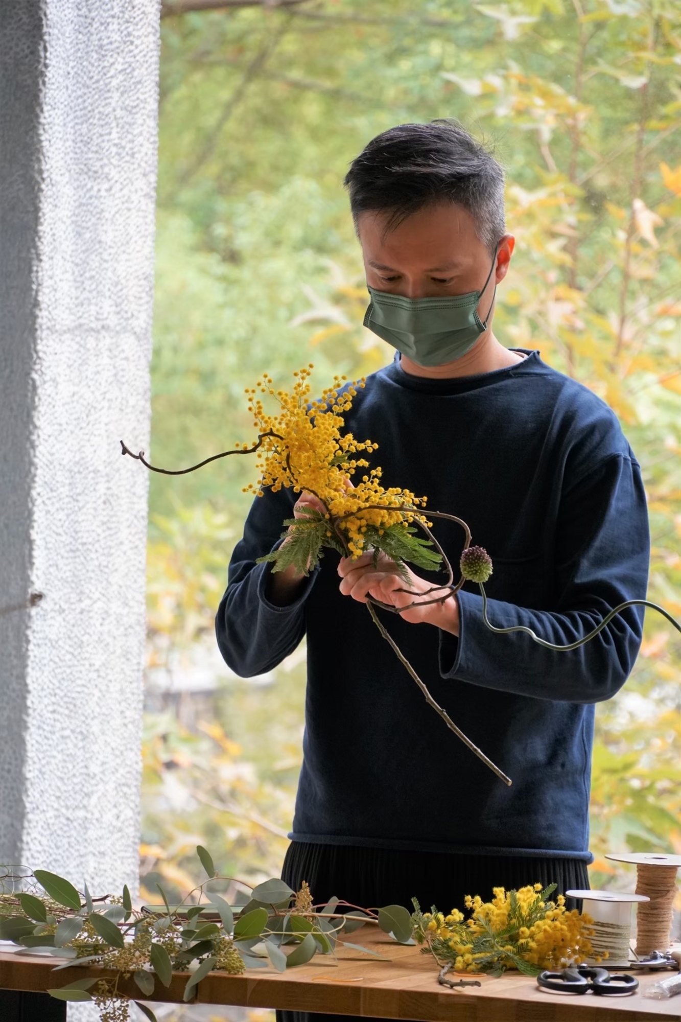 花材是花藝設計裡的元素,花藝的溫度是順應時令引進自然,使用時季植物讓大家體驗四季植物的美好。投入式桌花,在不同的載體中找到自然與空間的對話。