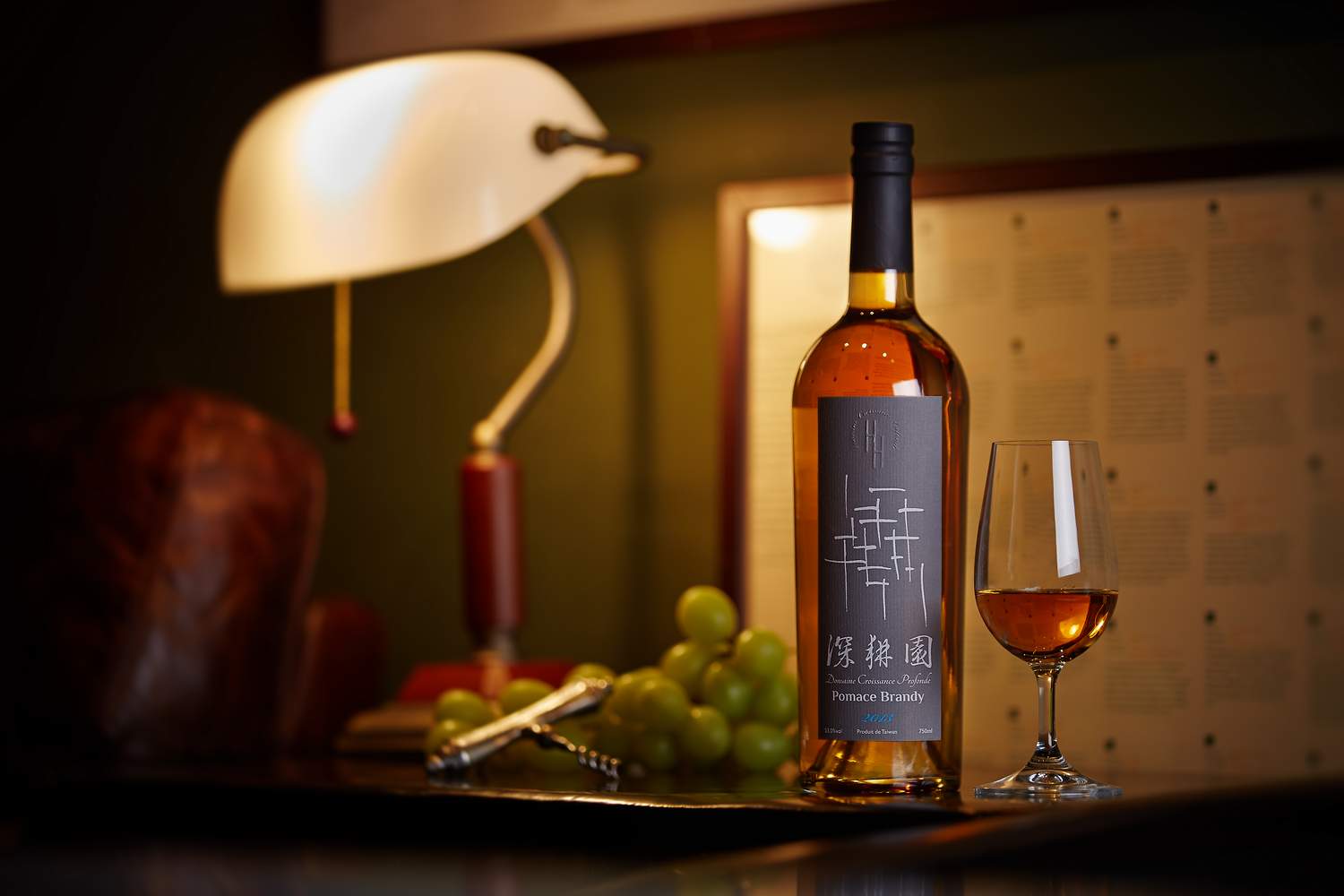 深耕園義式白蘭地又稱為果渣白蘭地,原料來自釀造黑后葡萄酒自流汁後所得之果皮、 葡萄籽及葡萄酒汁。身為品牌領導者,深耕園在蒸餾過程中去酒頭酒尾,只取最精華的酒心部分。蒸餾原汁L'eau de vin先於法國白橡木桶中桶陳三個月,再過桶黑后葡萄酒桶。酒質呈明亮琥珀色澤,白花系中透露著葡萄果香,以及乾果、可可氣息,口感溫潤甜美。搭配中式菜餚或餐前餐後酒,甚至單飲都是極優秀的義式白蘭地酒款。