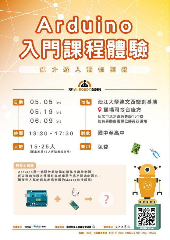 本課程屬於系列課程,涵蓋智慧機器人與基礎自造課程,由科技部指導、南部科技工業園區管理局補助,淡江大學規劃與執行。