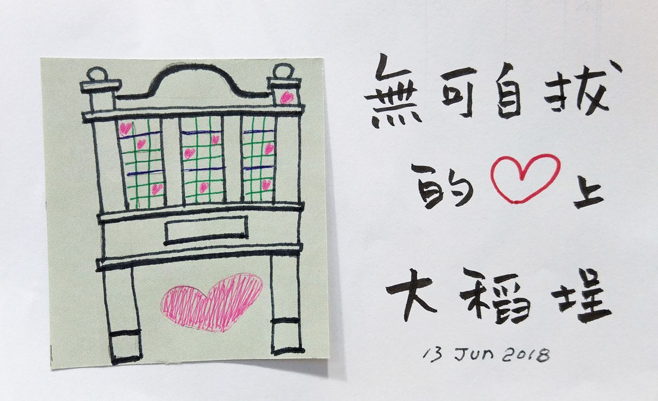 材料:施老師手繪大稻埕建物明信片一張,現場提供大家畫筆使用,