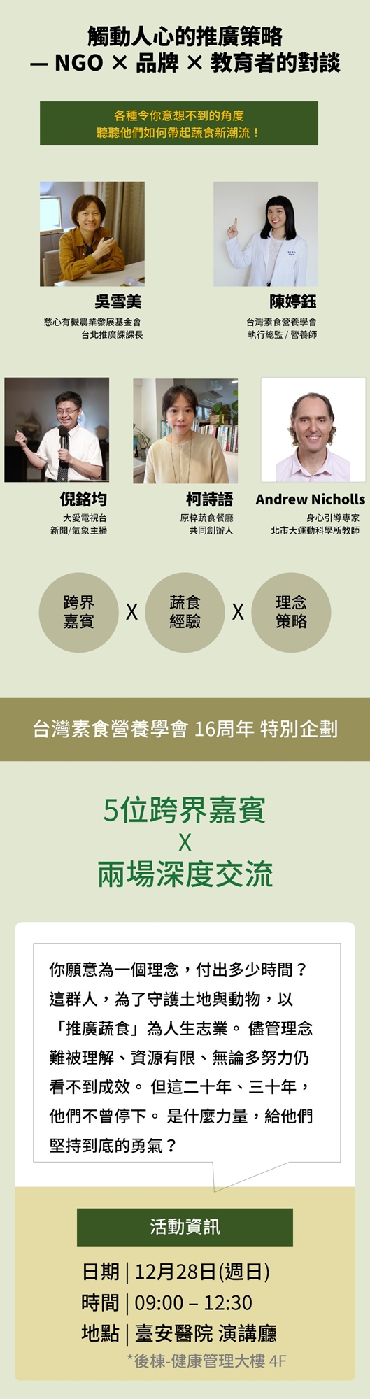 課程結束後,歡迎至B1餐廳享用蔬食午餐。