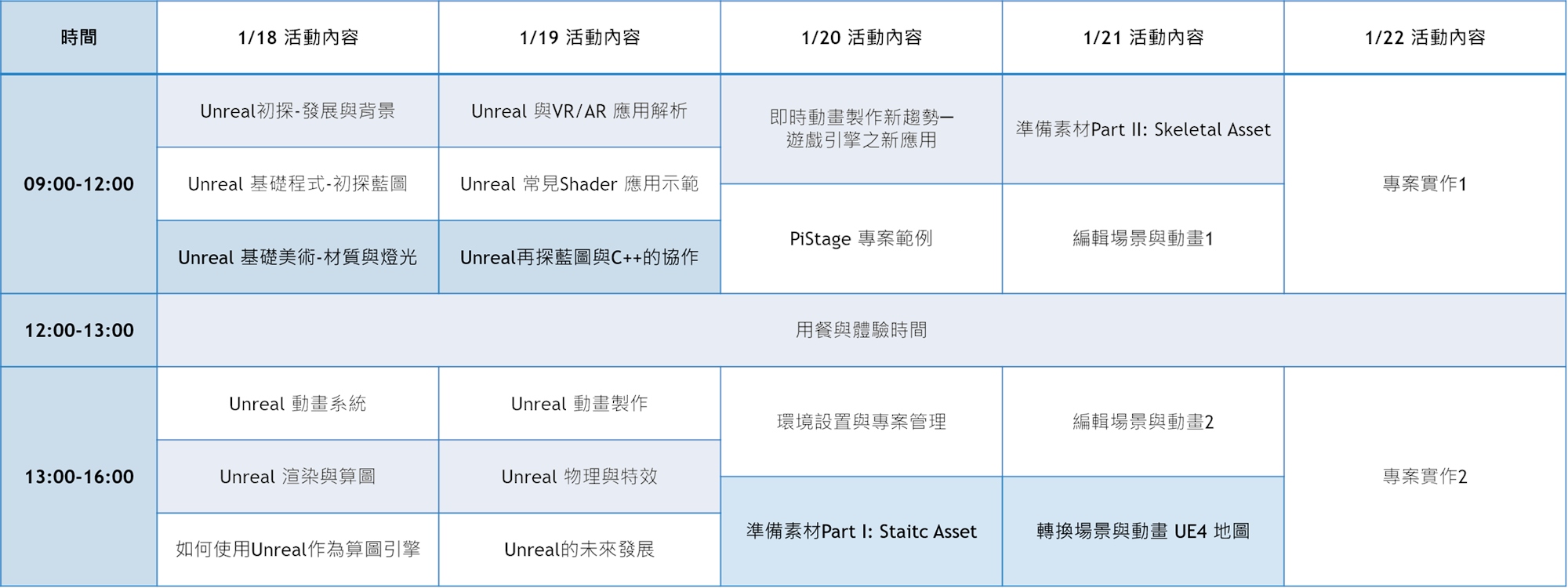 Unreal Engine 是目前主流的遊戲開發引擎之一,擁有圖形化的程式介面及豐富的內建素材,因此眾多知名遊戲都是以此軟體開發建構。但其實Unreal也能作為動畫製作的工具,從角色骨架製作到場景設計皆一應俱全,加上強大的擬真渲染功能,使得Unreal擁有得天獨厚的影視製作新解方,本研習營將帶給您最完整的Unreal體驗!從Unreal的背景及基礎,一路到解析超快速動畫的應用與範例,全部囊括! 讓您意猶未盡收穫滿滿!!