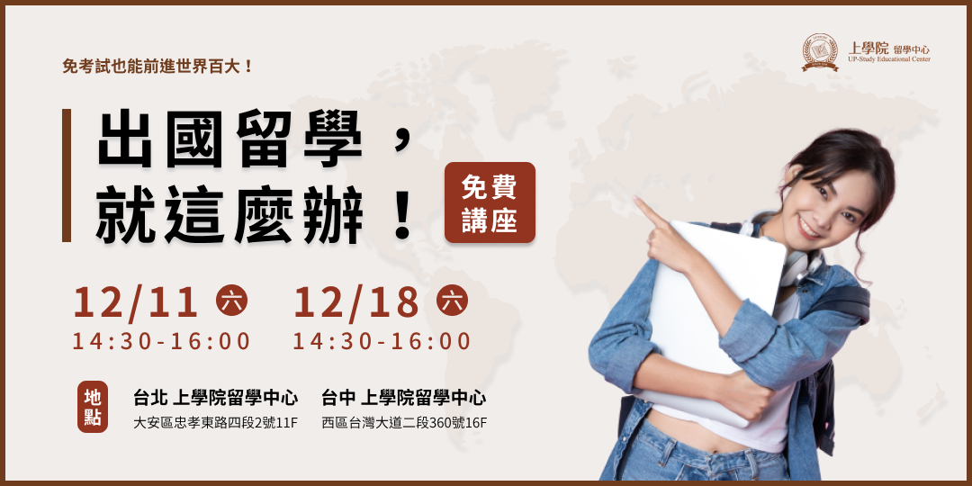| 現在報名!上學院留學講座 -《出國留學,就這麼辦!》