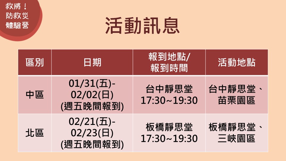 5.若遇不可抗拒之因素,本會將另行公告取消或暫停營隊之辦理,並主動聯繫。