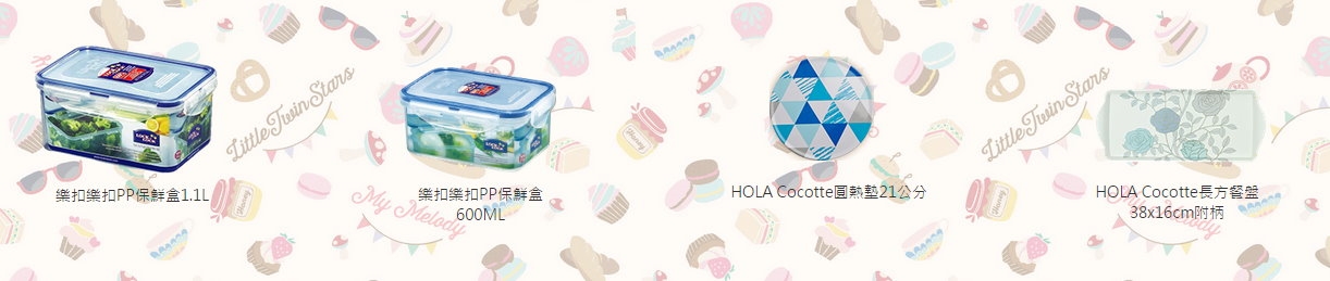 - HOLA Cocotte圓熱墊(幾何圖形/玫瑰花園/抽象花束三款圖案)、Cocotte長方餐盤(幾何圖形/玫瑰花園/抽象花束/小熊共四款),以上圖案隨機出貨,恕無法指定。