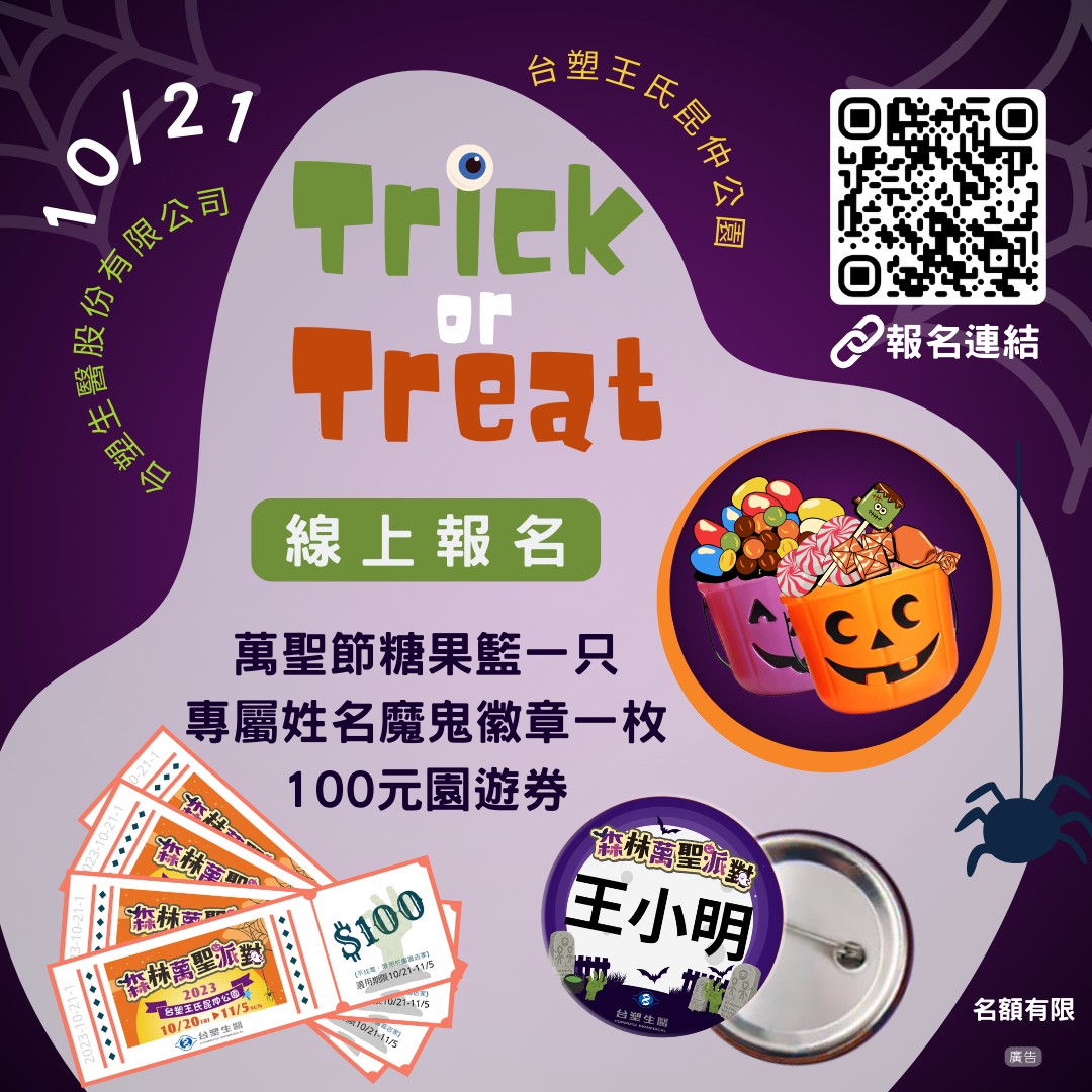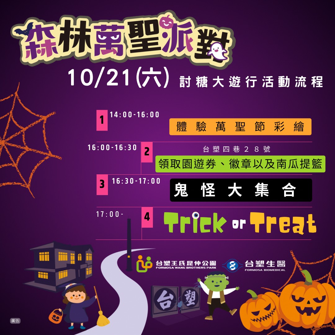 裝扮成你喜歡的角色一起到《台塑王氏昆仲公園》踩街搗蛋要糖去
