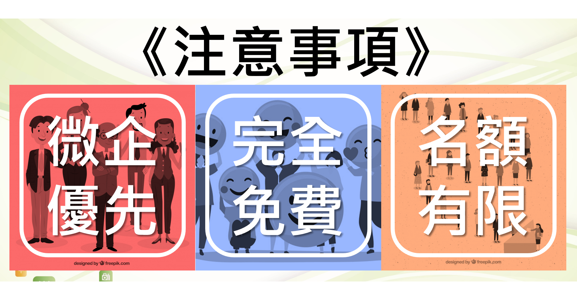 歡迎員工人數五人以下之微型企業主、個人工作者或對本主題有興趣者