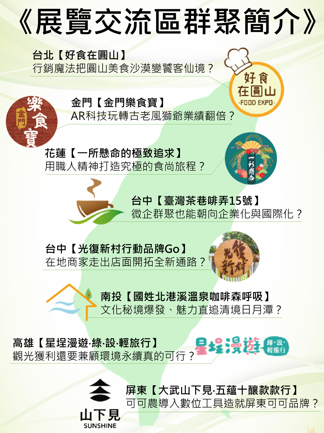 暨演講與座談之後,和8組現正運作中的群聚零距離交流,體驗群聚如何透過資源整合,實現共同提高生產力的目標